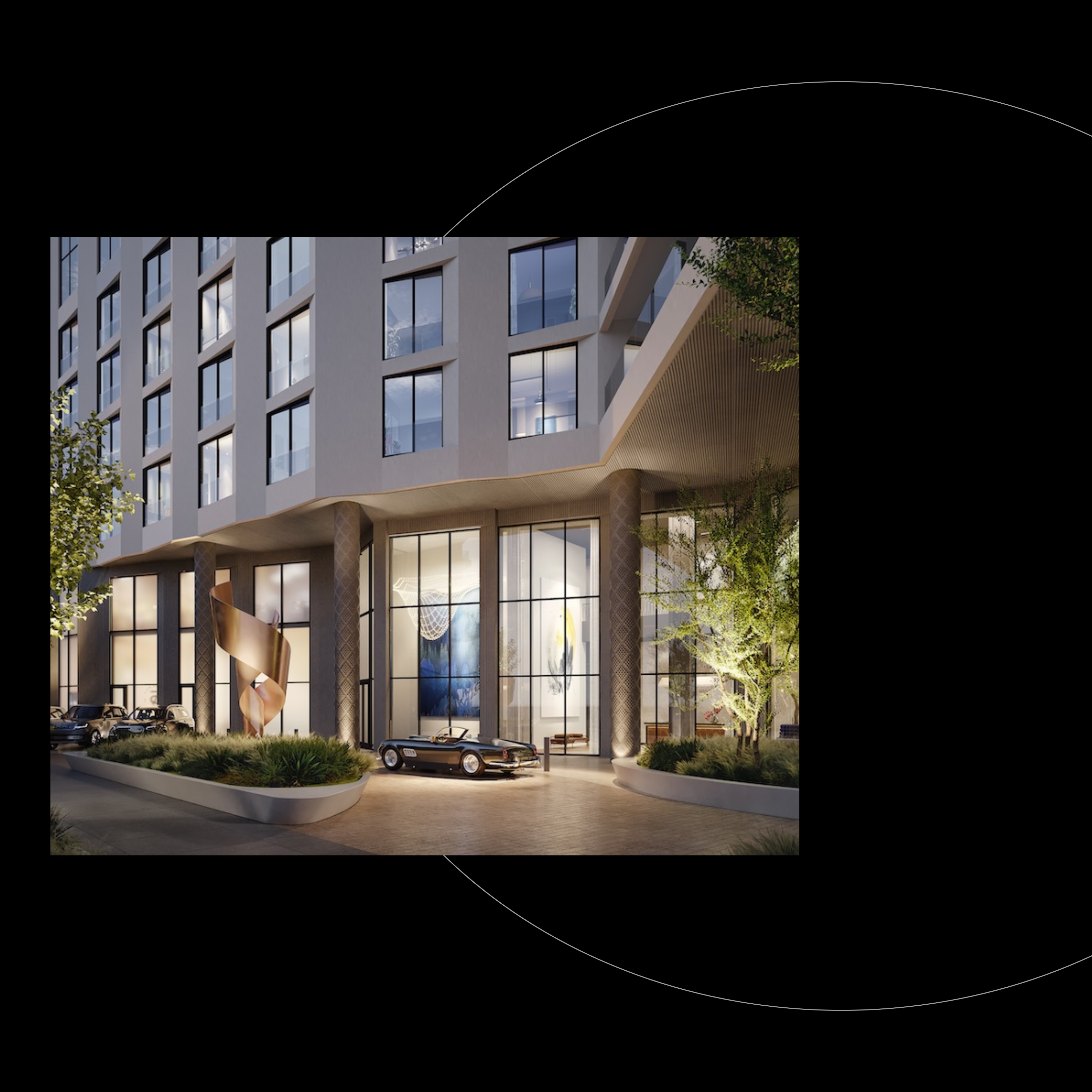 A serene arrival experience begins with a private entrance, valet service and a double-height, sun-washed lobby. The meticulously landscaped porte-cochere seamlessly guides residents and guests from the energy of the city to the comforts of home.
